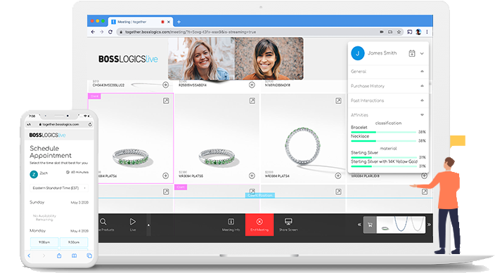 We enable one-way or two-way video to meet face-to-face throughout the experience. You know your customers best, so to help you collaborate, the BOSS Clienteling products are integrated throughout the platform, allowing valuable and timely insight into past purchases and events such as birthdays and anniversaries.
